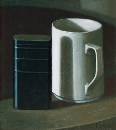 Schwarze Büchse, weiße Tasse