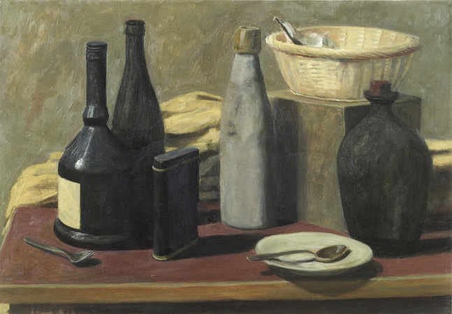 Stillleben mit schwarzen Töpfen