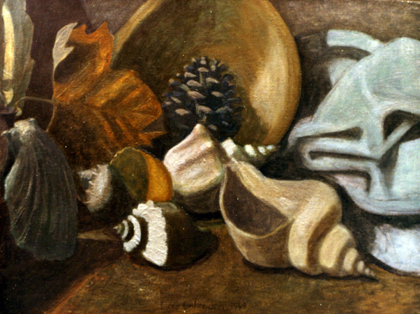 Stillleben mit Muscheln und Zapfen